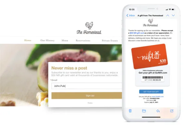 3. Inserisci un modulo di iscrizione sul tuo sito Web e aggiungi un incentivo per una carta regalo Nift da $ 30 - GRATIS