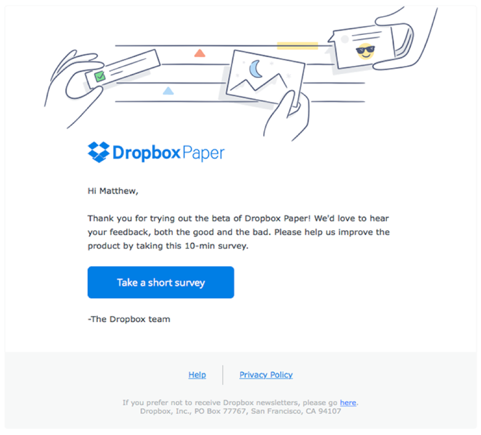 Dimostrerà anche che stai facendo sforzi speciali per creare un sentimento di relazione personale. Puoi anche invitare domande, commenti e feedback per coinvolgere i clienti e far loro sapere che desideri ricevere loro notizie. La sensazione che siano essenziali può portare molte risposte che stavi cercando.