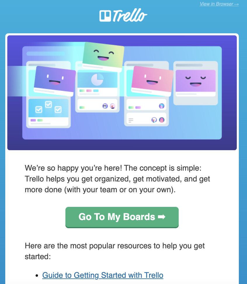 Sebbene i post del blog possano spesso raggiungere coloro che potrebbero non essere clienti attuali, molti di questi contenuti sono preziosi per (e potrebbero non essere visti) dalla tua attuale base di utenti. In Grammarly, il nostro team dedicato ai contenuti dispone di molti dati su quali contenuti del blog si comportano bene sui social, guidano il traffico, incrementano le iscrizioni e hanno un valore stagionale. Siamo sempre alla ricerca di opportunità nel team del ciclo di vita per trovare nuove case per contenuti ad alte prestazioni come valore aggiunto aggiuntivo per gli utenti esistenti. Anche se il contenuto non riguarda specificamente il prodotto, insegnare qualcosa di nuovo o rivelatore può fare miracoli per l'affinità del marchio e aggiungere un'ulteriore dimensione di valore alle comunicazioni del ciclo di vita.