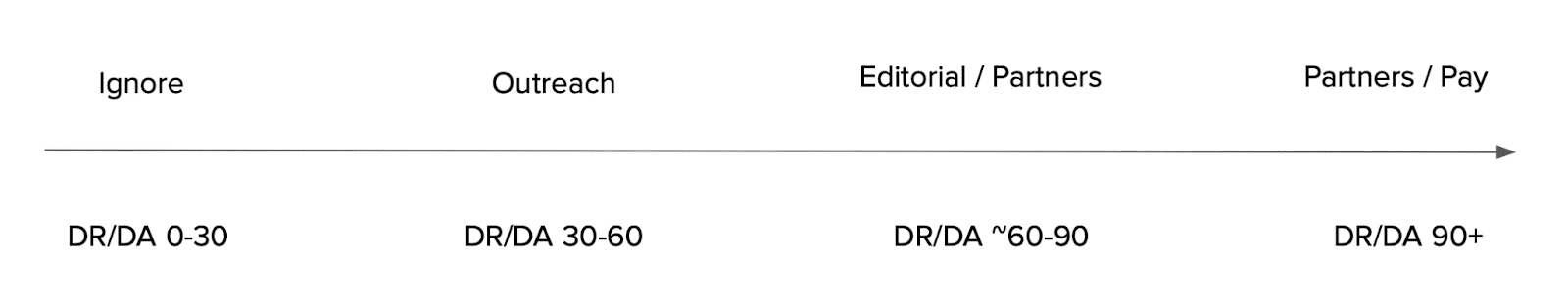 La sensibilizzazione a freddo è un esempio perfetto. Nella maggior parte dei settori, al di fuori di quelli non sofisticati e al verde, il cold outreach in genere funziona solo su siti con DR inferiore (leggi: più piccoli).