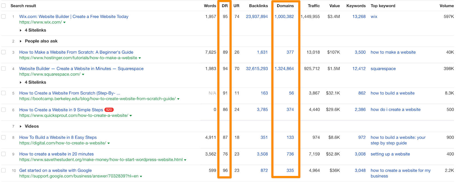 Quindi, come ti aspetti di competere con questi marchi? Questi intervalli DR? O il numero di domini di riferimento a una pagina del tuo sito?