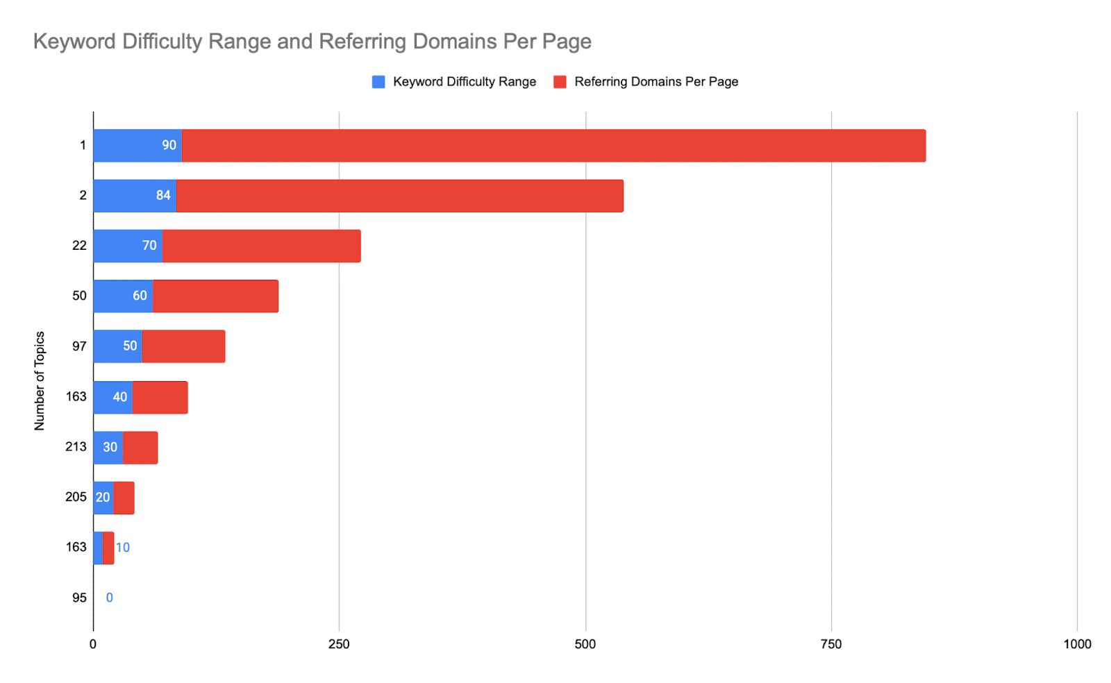 Ciò significa che, in media, stai osservando un intervallo di difficoltà delle parole chiave di ~30-60 con circa ~50-200 domini di riferimento per pagina.