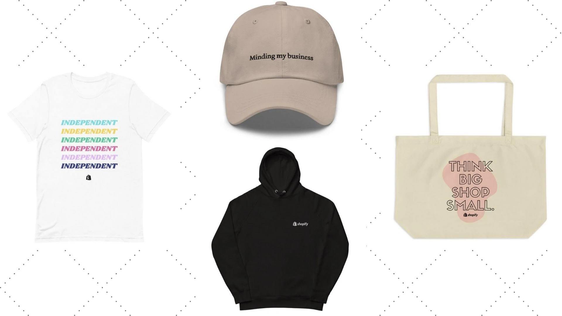 Il marchio di Shopify riguarda indipendenza, resilienza, creatività e, naturalmente, mettersi al lavoro. Usandolo come punto di partenza possiamo iniziare il processo di creazione del merchandising.