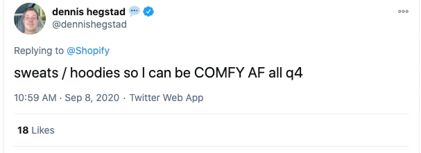 Quindi, l'abbiamo fatto con il nostro pubblico su Twitter per vedere cosa vorrebbero vedere nel potenziale merchandising di Shopify.