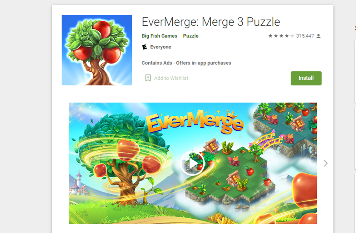 Ecco i tipi di contenuti che puoi trovare sulla pagina Google Play di EverMerge e come sono ottimizzati.