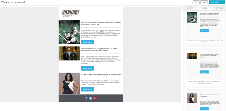- Trovali nell'editor , già in righe già pronte, con titoli, testo, collegamenti, immagini e inviti all'azione ottimizzati