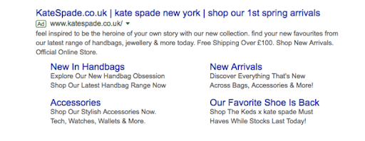 Ecco un esempio di annuncio di Google di Kate Spade: