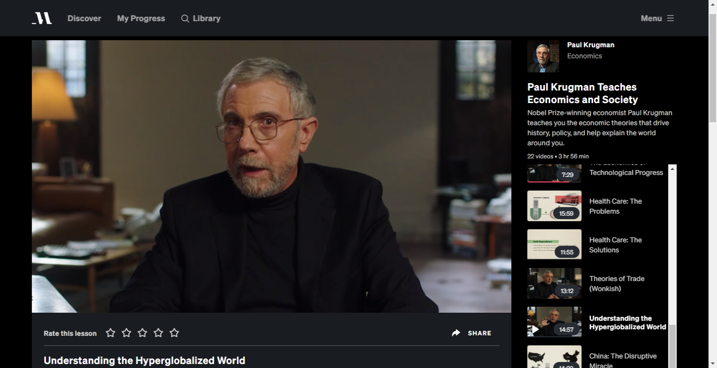 Nel complesso, la Paul Krugman Masterclass è una risorsa eccellente per chiunque desideri saperne di più sull'economia da uno dei migliori economisti del mondo.