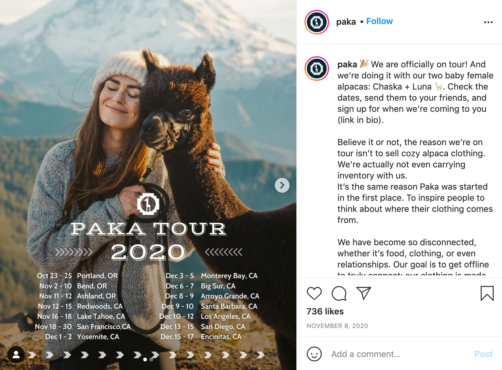 The brand also benefited from leveraging influencer-generated content while on tour. TikTok creator, Bella Poarch, did a photoshoot with the alpacas and shared it with her 63.3 million fans!