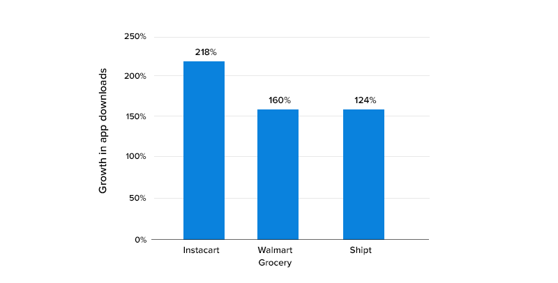 Questo è un bene per i consumatori perché offre una maggiore varietà, maggiore concorrenza all'interno dei fornitori, consegne più rapide ed efficienti in termini di costi. Di conseguenza, le persone che non comprendevano cibo e tecnologia insieme ed erano ciniche riguardo all'intero processo in passato, ora hanno scaricato app di consegna di generi alimentari durante questa crisi. I download di app per la consegna di generi alimentari sono aumentati esponenzialmente negli Stati Uniti nella prima metà di marzo.