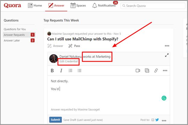 Si è tentati di entrare, iniziare a rispondere alle domande e collegarsi al tuo sito web. Questo ti farà bandire o sospendere da Quora entro pochi giorni.