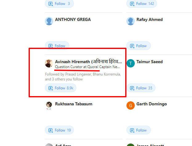 Ho trovato uno stagista, il CFO di Quora e un responsabile dell'analisi aziendale. Se fossi attivamente alla ricerca di opportunità editoriali, controllerei le persone che seguivano il CFO.