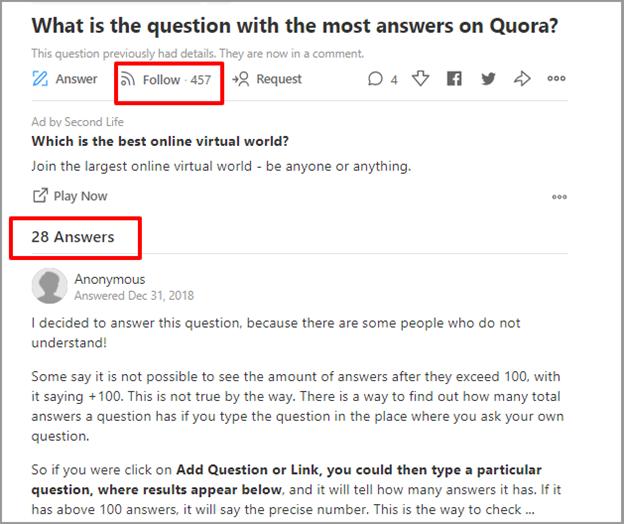 Più risposte ha una domanda, meno rilevante diventa per la tua strategia di mercato Quora.