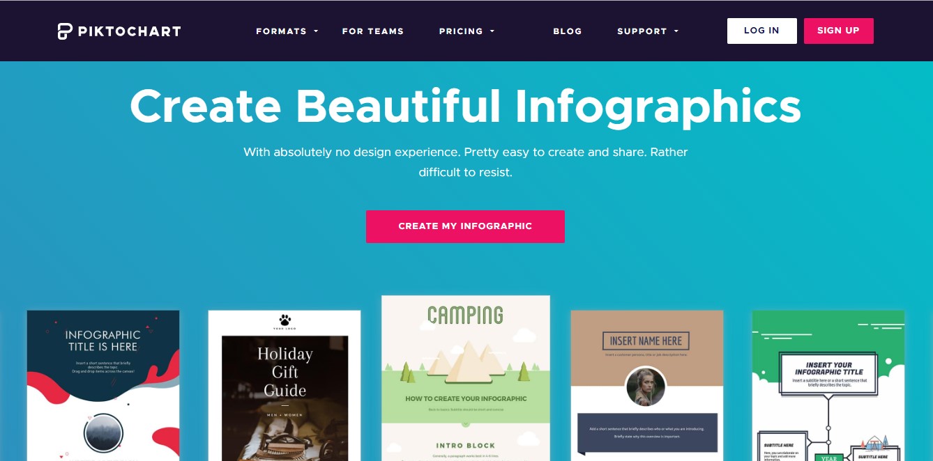 Con Piktochart podras crear infografie, presentaciones, poster, flyers, reportes a partir de dinamiches plantillas. Questa pagina ofrece ademas mas de mil iconos gratuitos come paletas de colores pensadas para Impactar. Un dato importante: los infograficos que crees con Piktochart permette a Google e altri buscadores encontrarte en su busqueda. Hay opzioni gratuite e pagate da US $ 12 in saldo.