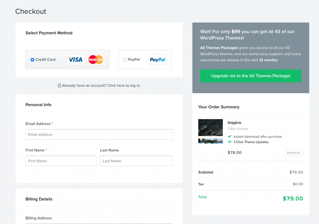 La maggior parte delle persone è tentata da questa offerta al momento del pagamento, quindi potrebbe considerare che in futuro potrebbe essere utile avere accesso a più di un solo tema. Tuttavia, le statistiche ci mostrano che solo il 15% circa dei clienti che acquistano i nostri abbonamenti a tema finirà per utilizzare più di un tema. Psicologicamente, per i clienti è importante avere accesso a tutti i temi invece di dover pagare di più in seguito.