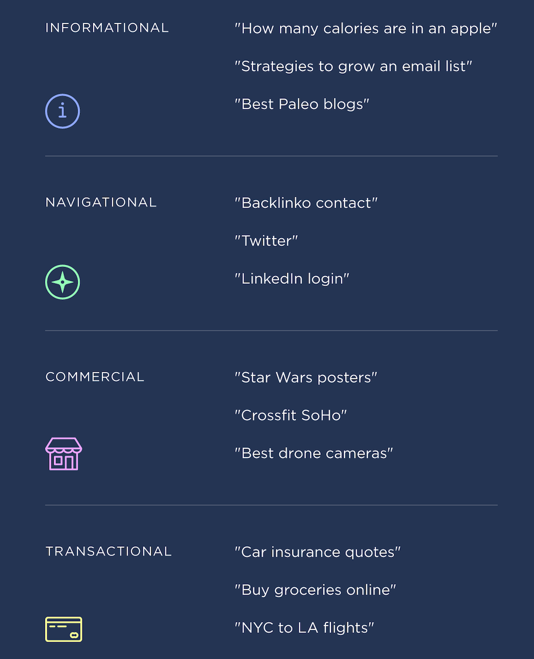 Tipi di intento dell'utente che ti guideranno nella creazione di una strategia per le parole chiave