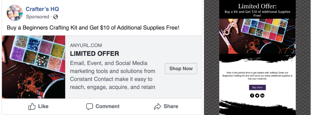 Una volta che la tua pagina di destinazione è stata impostata e hai un link ad essa, puoi utilizzare quel link in tutti i tipi di campagne pubblicitarie. Le pagine di destinazione funzionano altrettanto bene per Facebook (come abbiamo visto nell'esempio sopra), Instagram e Google Ads come per un'e-mail promozionale, quindi sperimenta e scopri cosa funziona meglio per i tuoi obiettivi di business.