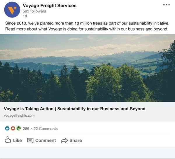 In questo post su LinkedIn, Voyage Freight fornisce consigli di marketing ad altri uomini d'affari. Posizionarti come esperto può avere un impatto immenso per la tua attività.