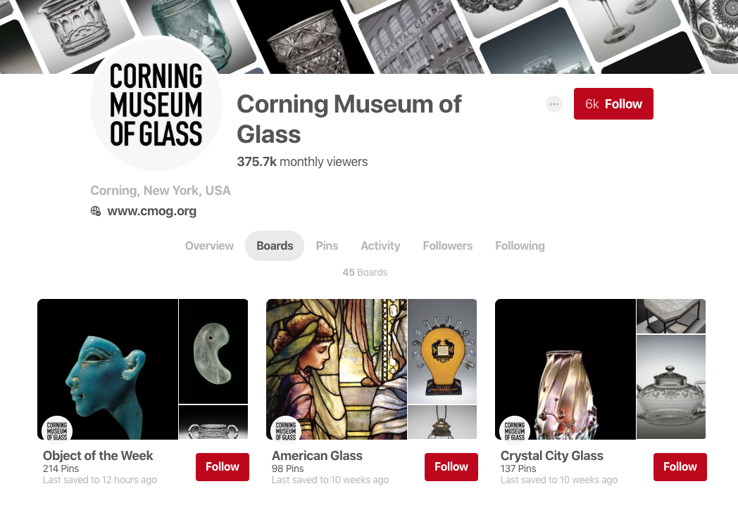Il Corning Museum of Glass ha collegato il proprio sito Web al proprio profilo Pinterest. Sul loro profilo, vedi le bacheche di vetro pertinenti e nella scheda Attività, vedi ciò che le persone hanno appuntato dal loro sito web.