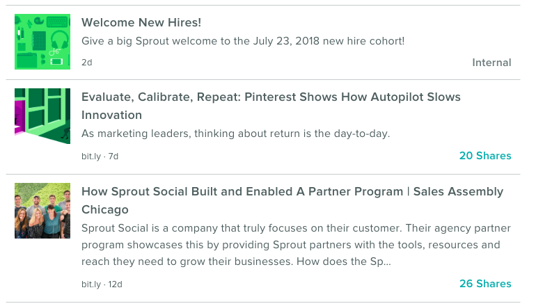 Un modo per rendere facile per i dipendenti raccontare le proprie storie sul museo è attraverso la piattaforma Bambu di Sprout. Bambu fa emergere storie pre-approvate che i dipendenti possono quindi condividere sui propri account social con il proprio giro unico. Ciò significa che i tuoi contenuti raggiungeranno un pubblico più ampio attraverso le reti dei dipendenti e darai loro la possibilità di mettere in relazione queste storie con le proprie esperienze di lavoro al museo.