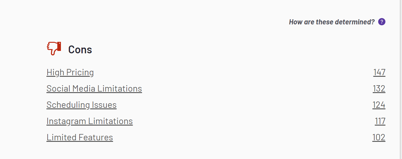 Secondo G2, i prezzi sono in cima alla lista delle carenze di Sprout Social.