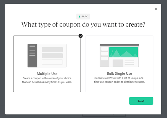 Ad esempio, lo strumento Coupon integrato ti consente di creare codici sconto e coupon promozionali e di inviarli per generare e coltivare lead.