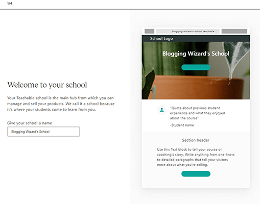 Quindi, ti guiderà attraverso il processo di creazione della tua prima scuola online (ovvero il sito web del tuo corso online):