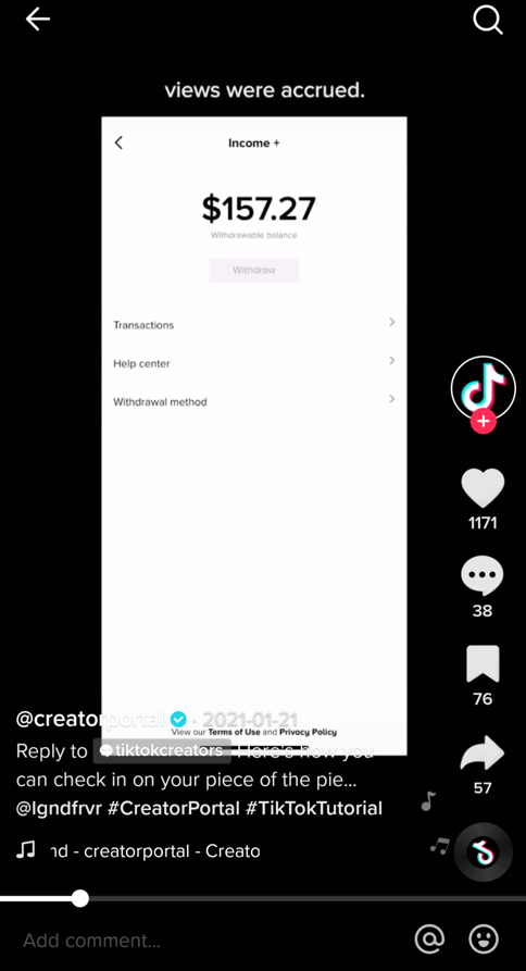 Mesi dopo l'annuncio iniziale del Creator Fund nel giugno 2020, l'account ufficiale TikTok @CreatorPortal ha pubblicato una serie di video che spiegano cos'è il fondo e come funziona.