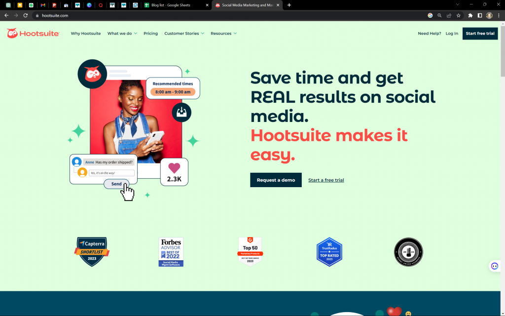 Utilizzando Hootsuite, puoi monitorare le prestazioni dei tuoi contenuti sui social media. Hootsuite può calcolare il ROI e le conversioni e tenere traccia delle conversazioni pubbliche sul tuo marchio o su argomenti specifici. I piani hanno prezzi a più livelli, a partire da $ 29 al mese e fino a $ 599 al mese per l'azienda.