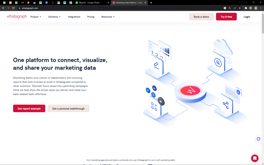 Whatagraph è uno strumento completo per i dati di marketing che consente alle agenzie e agli operatori di marketing interni di connettersi, visualizzare e condividere senza problemi i propri dati.