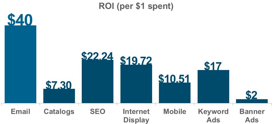 Nonostante la sua veneranda età, la posta elettronica continua a rimanere al vertice delle moderne attività di marketing in termini di efficienza. È quasi una banalità mostrare quanto indietro l'e-mail stia lasciando tutti gli altri canali nella competizione del ROI.