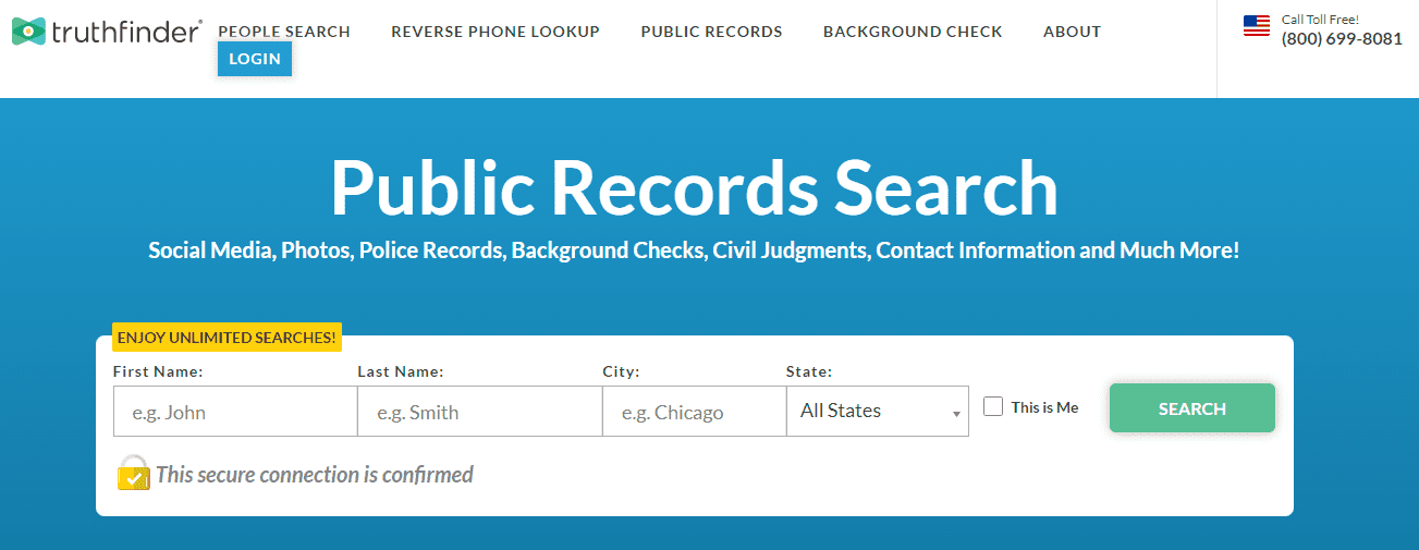 Quindi, in che modo questo servizio di controllo in background si accumula rispetto ad altri motori di ricerca pubblici là fuori? In questa recensione di TruthFinder, ti darò il mio feedback dopo aver testato TruthFinder per me stesso, inclusi i dettagli sulle sue funzionalità. Discuterò anche cosa lo distingue dai suoi concorrenti.