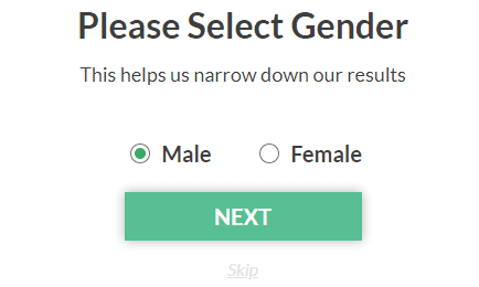 Nel passaggio successivo, mi è stato chiesto di selezionare il mio sesso per semplificare il processo di ricerca. Questo passaggio non è obbligatorio. Puoi scegliere di passare al passaggio successivo facendo clic su "Salta".