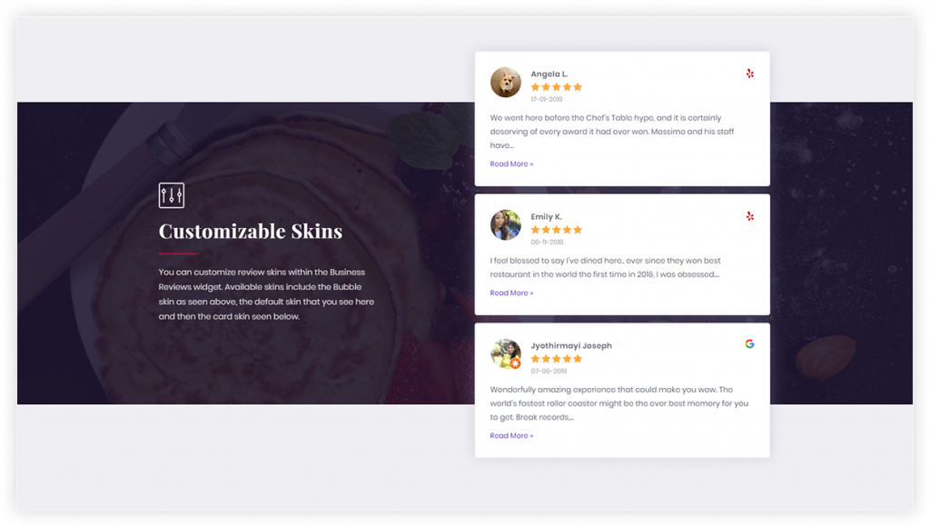 Quando si tratta di attirare più utenti nella canalizzazione di vendita, non c'è niente di meglio delle autentiche recensioni degli utenti per creare fiducia. Il nostro widget Business Review fa proprio questo. Questo widget aiuta a recuperare le recensioni di Google e Yelp direttamente dal tuo account aziendale al tuo sito web. Puoi facilmente personalizzarlo e visualizzarlo nel modo desiderato. Elementor Pro ha anche questo fantastico widget. Lo abbiamo reso più flessibile aggiungendo una tecnica per recuperare direttamente le recensioni di Google senza alcun lavoro manuale.