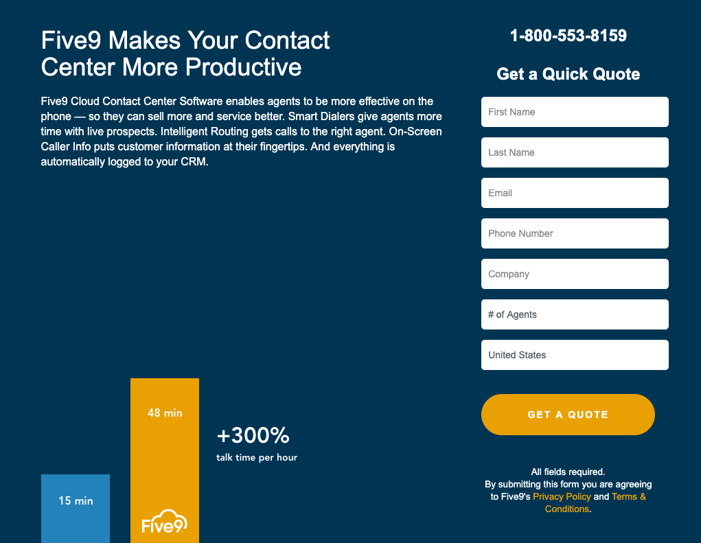 Possono anche aiutare a inquadrare il tuo prodotto o servizio in un modo che dimostri quanto siano più efficaci rispetto alla concorrenza. Prendi questa infografica da Five9: