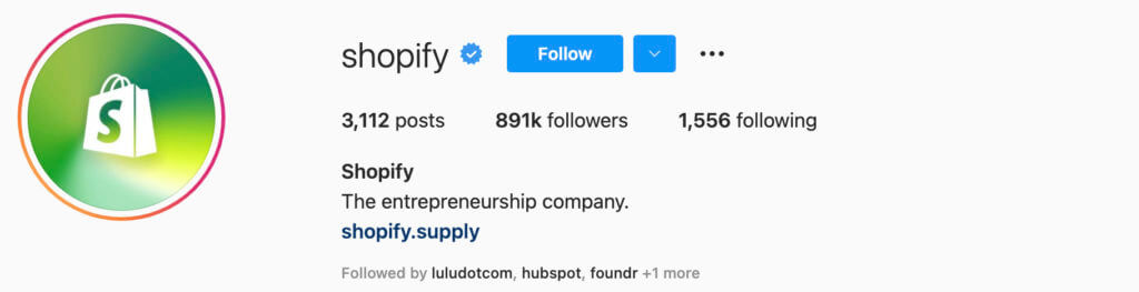 Shopify vanta 891.000 follower su Instagram, rispetto ai 294.000 follower di Squarespace e ai 36.3K di WooCoommerce.