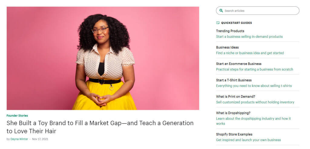 Shopify ha anche incanalato un sacco di risorse per educare il suo pubblico e aiutarlo ad avere successo.