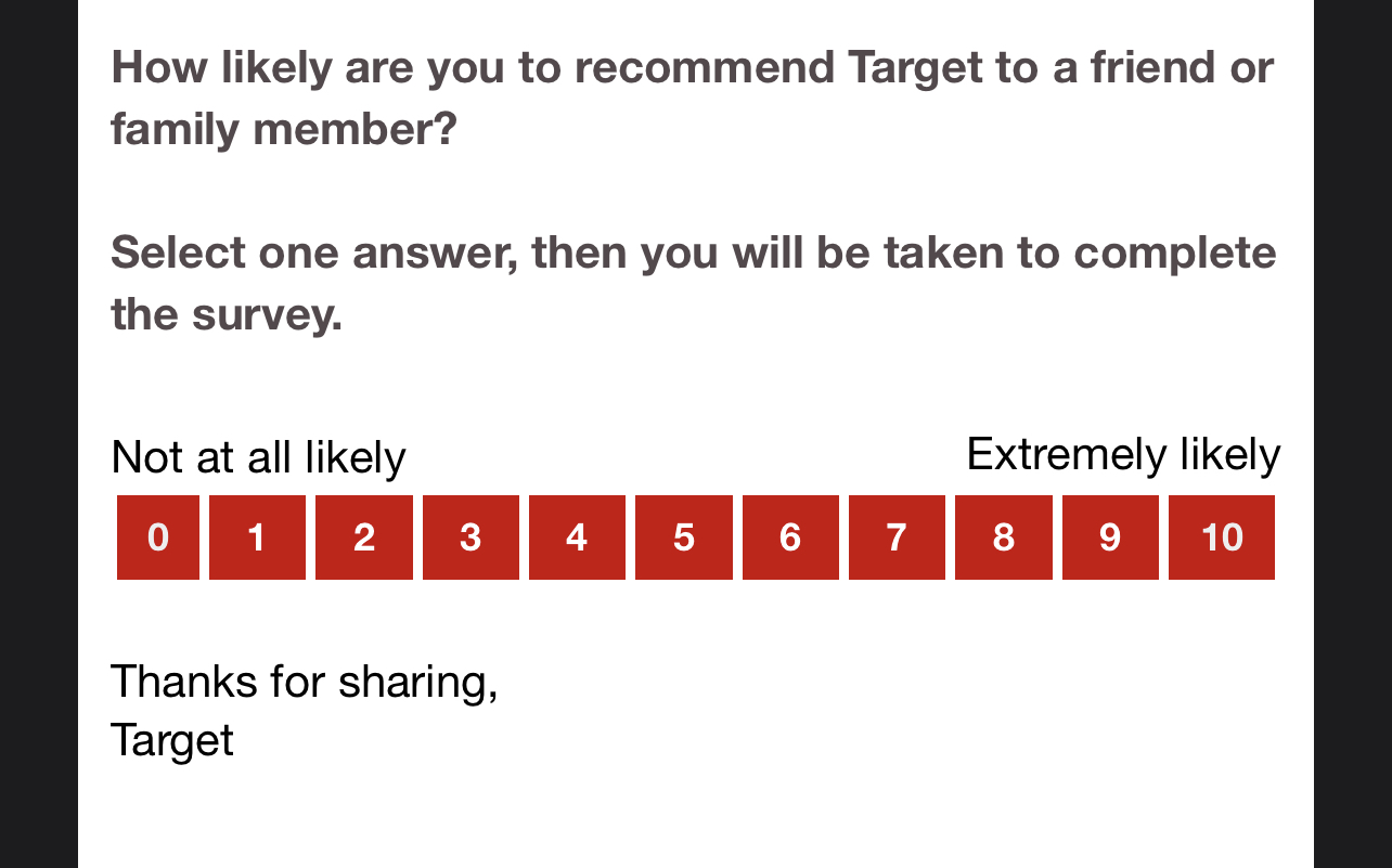 Ad esempio, potresti usarlo per prodotti specifici, chiedendo alle persone con quale probabilità consiglieranno quel prodotto a un amico. Potresti anche usarlo per classificare la soddisfazione delle persone per un'interazione con il servizio clienti.
