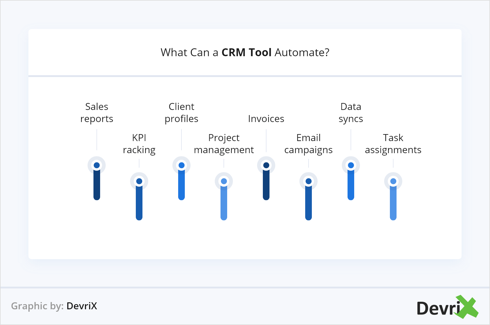 Una soluzione di automazione delle vendite particolarmente importante che puoi adottare è uno strumento di Customer Relationship Management (CRM). Con esso, puoi supportare i tuoi rappresentanti durante l'intero ciclo di vendita in modo che possano facilmente tracciare, organizzare e coltivare potenziali clienti per evitare che eventuali lead o clienti vengano ignorati o dimenticati.