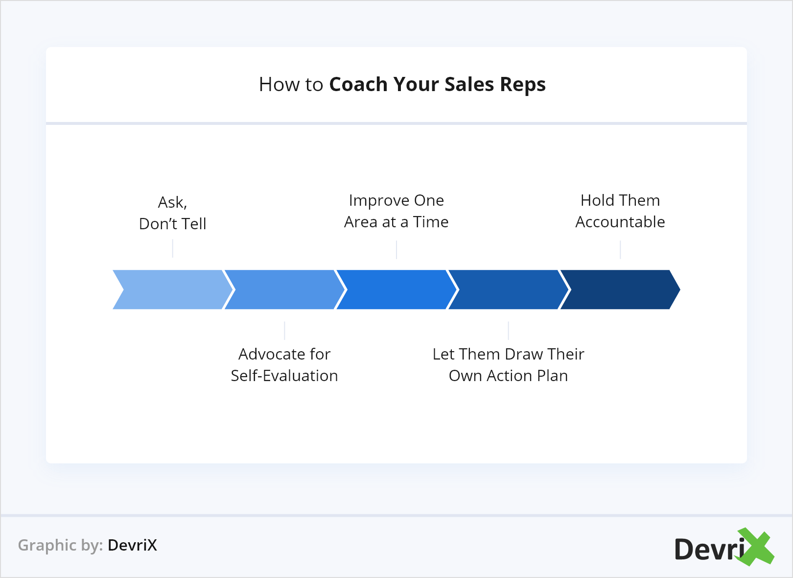Il coaching alle vendite è un processo con molte sfumature, ma il suo potere risiede nella premessa che i rappresentanti di vendita hanno le risposte e devono essere ritenuti responsabili.
