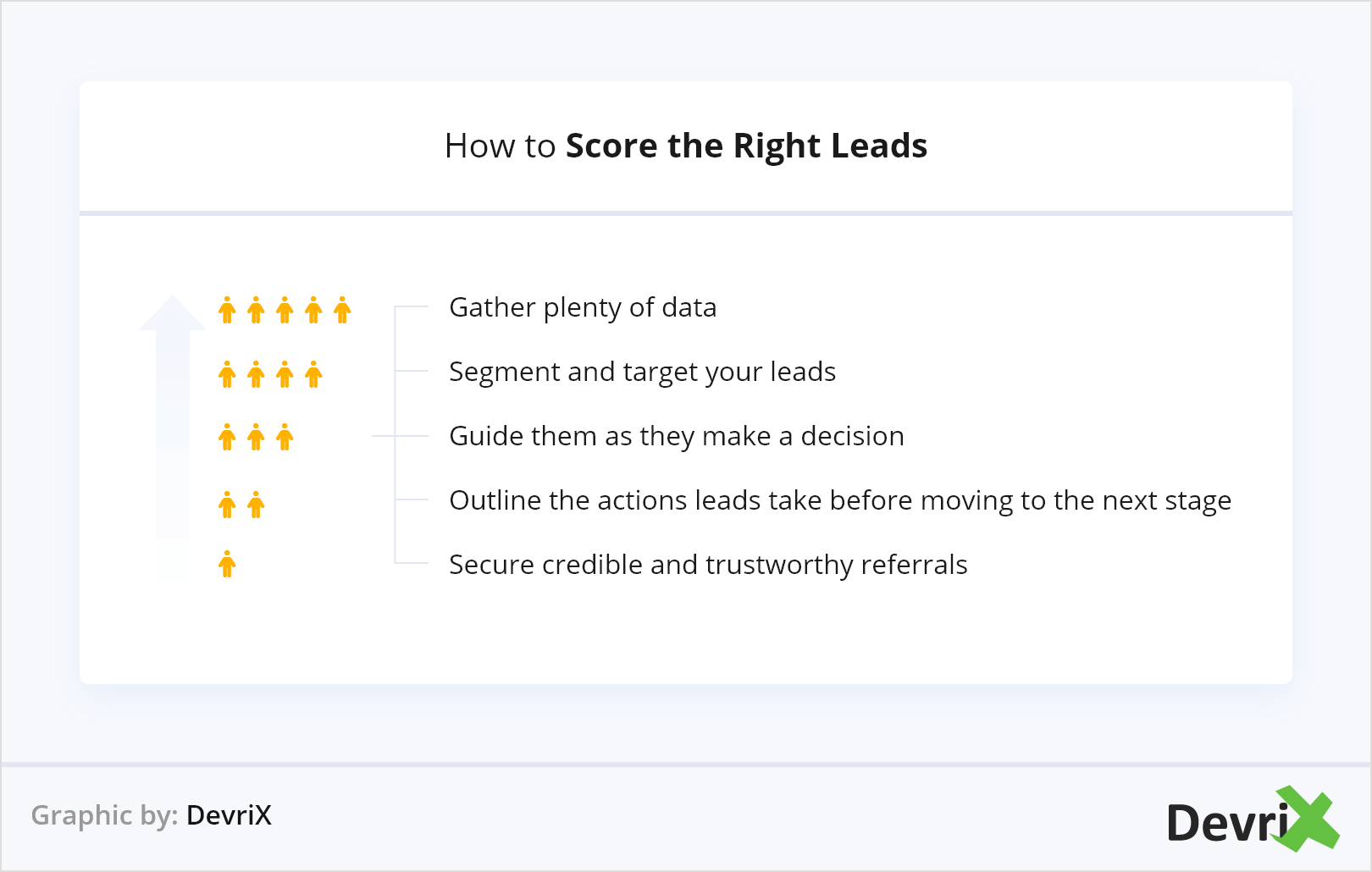 Per assicurarti di dedicare tempo e risorse ai giusti potenziali clienti, dovresti valutare attentamente i tuoi contatti e distinguere tra coloro che stanno solo navigando e quelli disposti ad acquistare. Quindi, quando un lead di qualità mostra un serio interesse per il tuo prodotto/servizio, puoi coltivarlo in modo più efficiente.