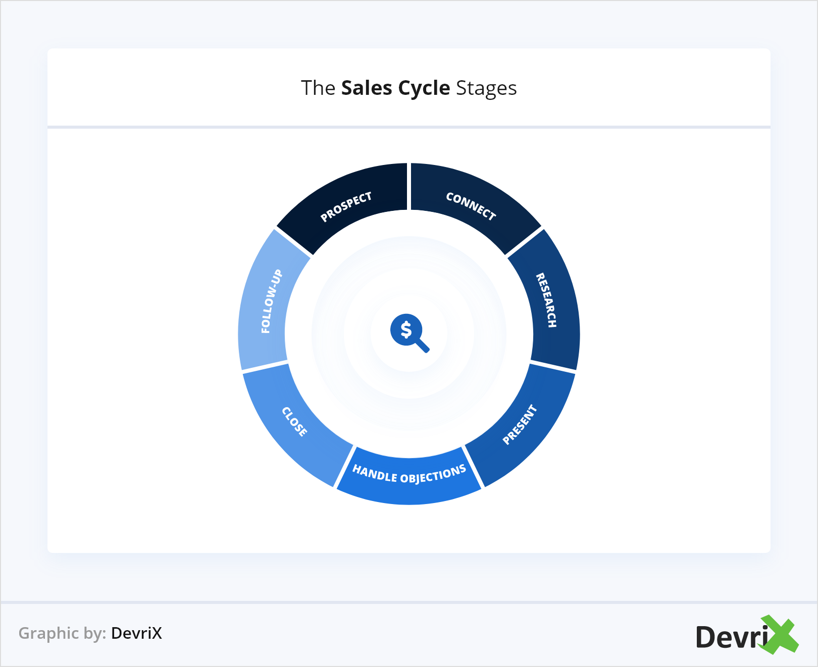 Poiché il ciclo di vendita segue il potenziale cliente mentre passa dai lead ai clienti, in un certo senso rispecchia il percorso dell'acquirente, ma dal punto di vista del team di vendita. In quanto tale, ogni fase successiva del ciclo dovrebbe mostrare un impegno incrementale nel risolvere le esigenze del cliente.