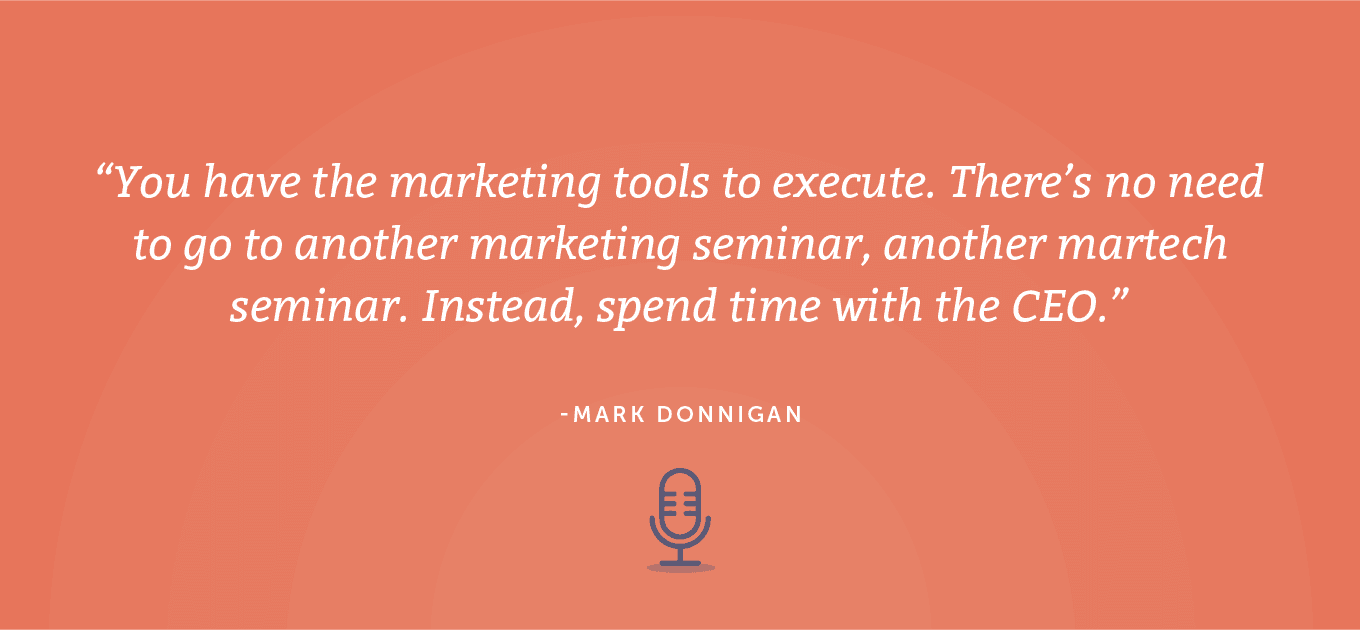 - “Hai gli strumenti di marketing per eseguire. Non c'è bisogno di andare a un altro seminario di marketing, un altro seminario di martech. Invece, trascorri del tempo con l'amministratore delegato".