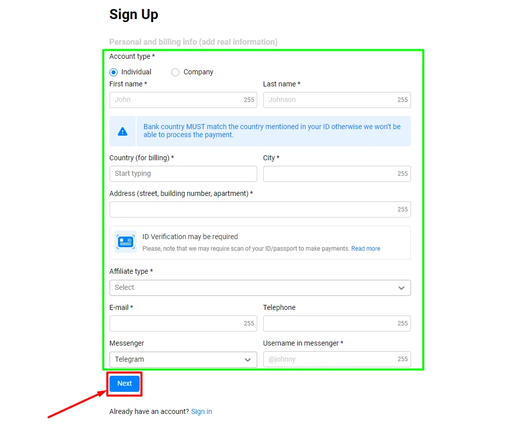 Passo - 4: Compila i dettagli richiesti e fai clic su "Avanti".