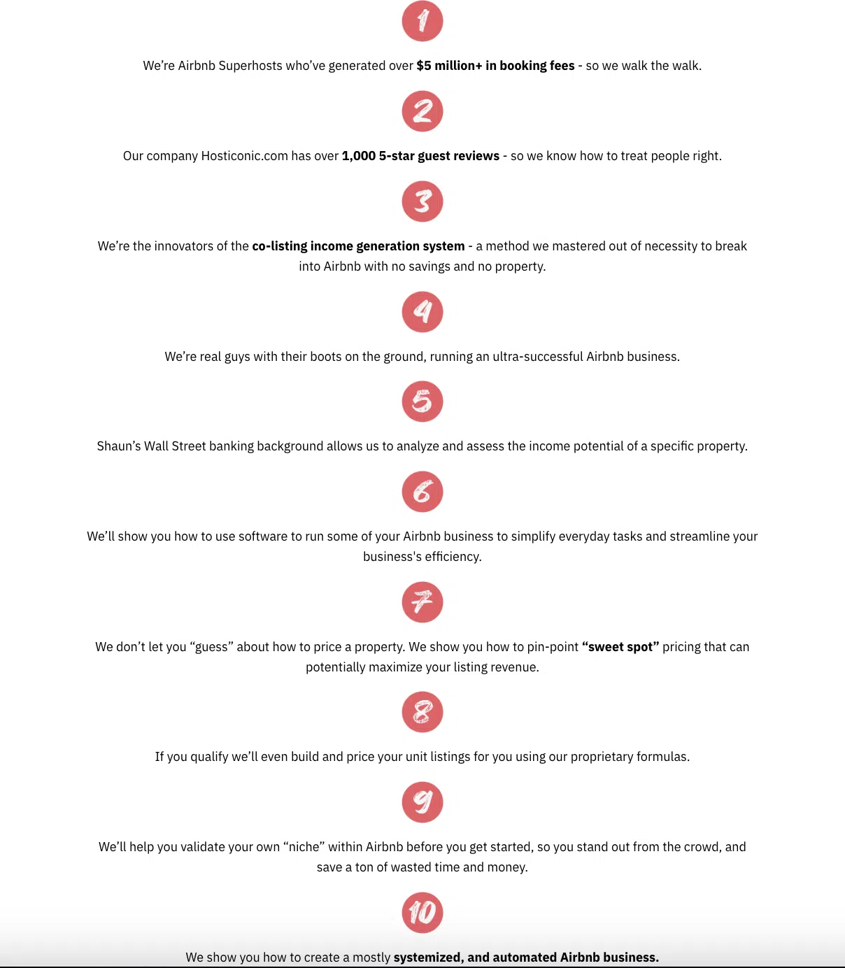 • 経験やスキルは不要:不動産や不動産所有の経験は必要なく、信用スコアのチェックもありません。 あなたに興味があり、時間と労力を投資する意欲がある限り、10XBNB チームはあなた自身の 6 桁規模の Airbnb ビジネスを開始するためのすべての知識を提供します。