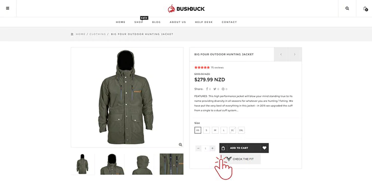 実際の動作を見る:ShopifyのBushbuck Outdoors