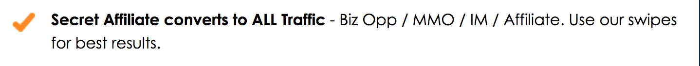 ClickBankのBizOpp /インターネットマーケティングオファーであるSecretAffiliateは、このオファーがどのニッチで機能するかを正確に伝えることで、もう1つの優れた例を提供します。