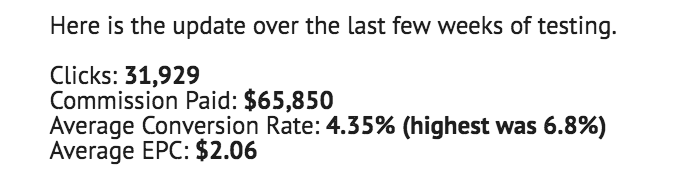今までに、あなたはすでにあなたの申し出をテストしているはずです。 あなたはそれがどのように機能するかのベースラインと製品のレートの良い考えを持っているべきです。 これらを自慢して見せてください。 このオファーの払い戻し率が低いことをアフィリエイトに知らせてください。 コールドトラフィックとウォームトラフィックの両方で変換できることがテストされ、証明されていることを伝えます。 平均EPCとコンバージョン率を知らせます。 健全な料金は、コンバージョン率の高いオファーに飢えている新しいアフィリエイトの優れたリクルーターとしても機能します。