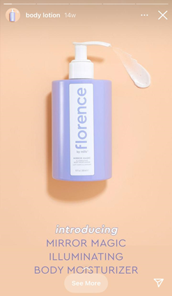 - 商品ごとに異なるハイライトを作成すると、ユーザーはフィード全体をスクロールしなくても、選択した商品の詳細を簡単にナビゲートして見つけることができます。 これはまさに@florencebymillsがその製品を紹介する方法です。
