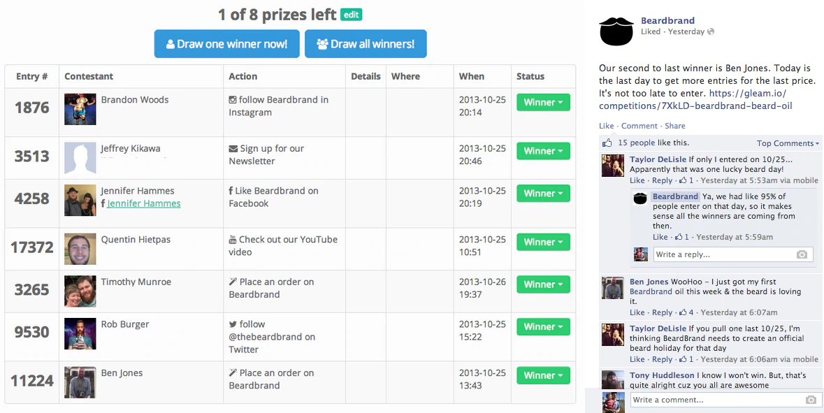 プレゼントがついに終わったら、必ず勝者にスポットライトを当ててください! あなたはこれに多くの時間を費やしました、そして勝者(おそらく)はあなたのために景品を宣伝するのに多くの時間を費やしました。